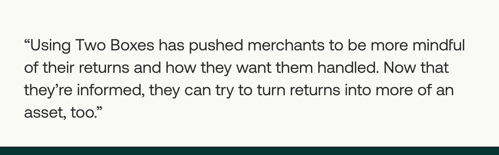 At Two Boxes, we make returns an asset instead of a liability. Book a demo today and get started!